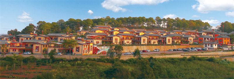 一幢幢色彩艳丽、开放通透的民居,把彝家人“黑之尊,黄之美,红之祥”的审美情趣完美呈现,彝族文化与现代建筑的巧妙融合,在这里相得益彰,原生态的自然风光与民族风情交织,质朴又多情。