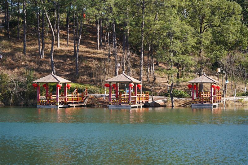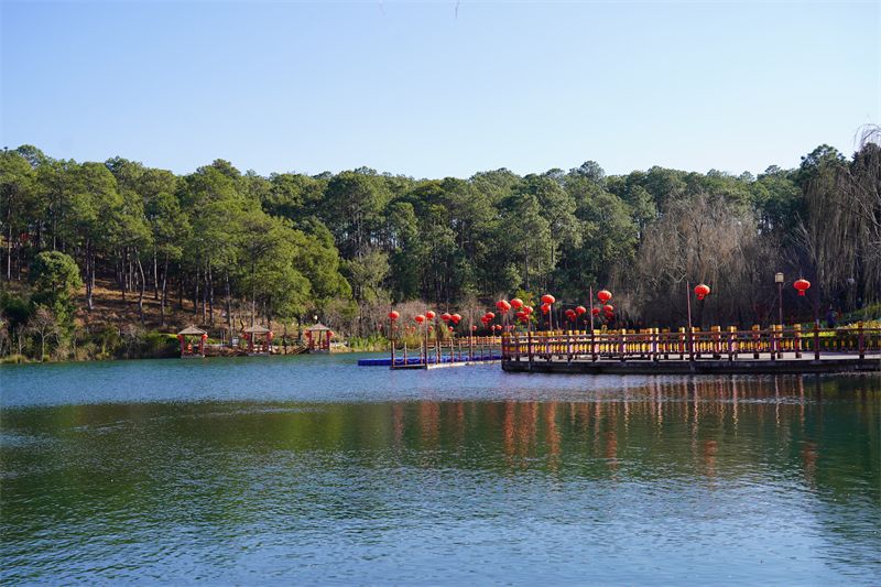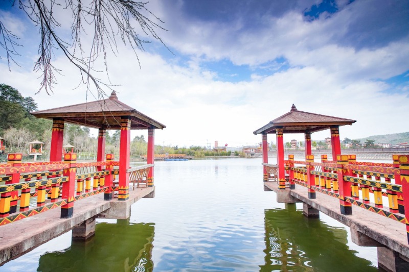 青松湖、葫芦海美景旖旎,有着诗情画意的风光;火把广场、石磨广场极富民族特色,广场上的太阳女神像、祭火塔、十兽图腾柱,无一不彰显着彝族文化的魅力。正可谓一步一风景,一景一陶然。