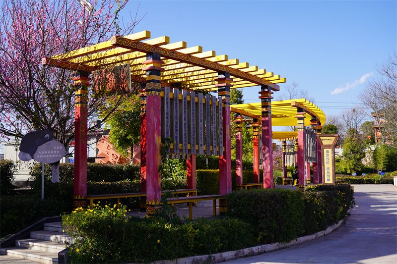 走进紫溪彝村,写有“秉彝园”的牌坊映入眼帘,再往前走,各具特色的景点一一呈现。