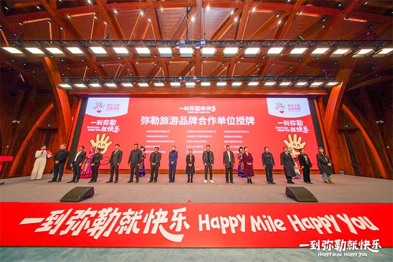 活动现场,农业农村部农村经济研究中心特约研究员、农本咨询首席专家贾枭为与会嘉宾深度解读了《弥勒旅游品牌战略》。现场还发布了《弥勒旅游品牌共建共享倡议》《快乐弥勒歌》MV,中国工商银行“快乐弥勒旅居储蓄卡(纪念版)”;同时,活动还举行了弥勒旅游品牌合作单位授牌仪式,云南东风韵文旅康养产业发展有限公司、云南吉瑞管理有限公司、弥勒市文化产业投资有限责任公司等30家企业获得授牌,成为首批弥勒旅游品牌合作单位。