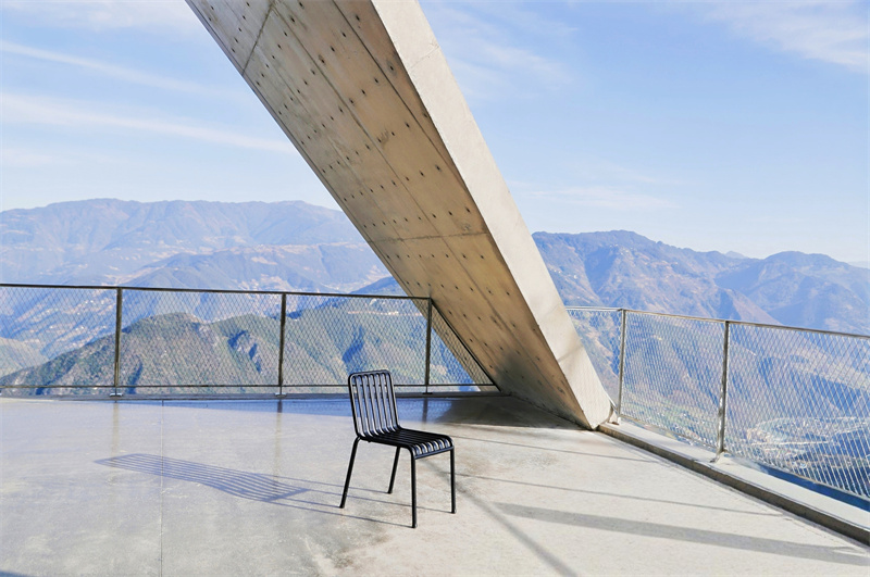 从蜿蜒山道盘旋而上,抵达怒江州泸水市阳坡村。形似弓弩箭头的前卫建筑嵌在悬崖之上,简洁的几何形态回应峡谷的深远与巍峨,带给人极强的视觉冲击与独特的空间体验。捧一本《怒江史话》静静阅读,抬眼是奔腾的怒江和高黎贡山的连绵云海。怒江,就从过去到现在,走入心间。