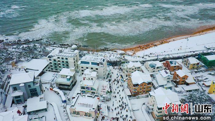 ※山东威海:冬雪勾勒山海画卷 网红地标迎旅游热潮