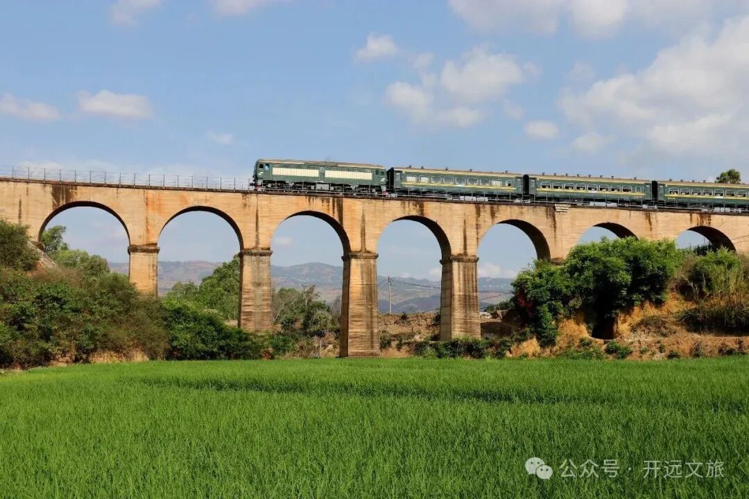 滇越铁路,这条始建于1903年的钢铁动脉,曾是中国西南地区最早通车的铁路之一,也是中国第一条国际米轨铁路。它被英国《泰晤士报》誉为“世界人类三大工程奇迹”之一,而开远,正是因这条铁路而兴,被誉为“火车拉来的城市”。2018年,开远米轨观光小火车应运而生,是滇越铁路目前唯一的客运段,让沉睡的工业遗产重焕生机。如今,它已累计开行近7500趟,接待游客超42万人次,成为一张流动的城市文化名片。