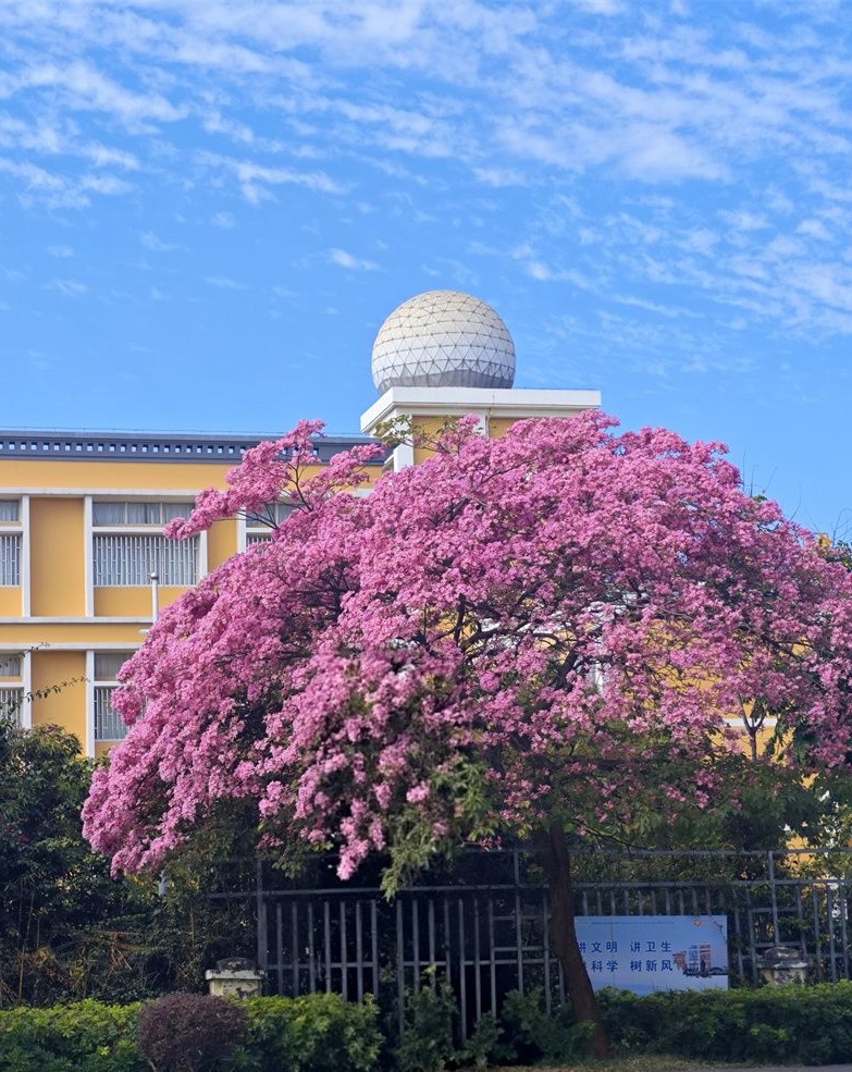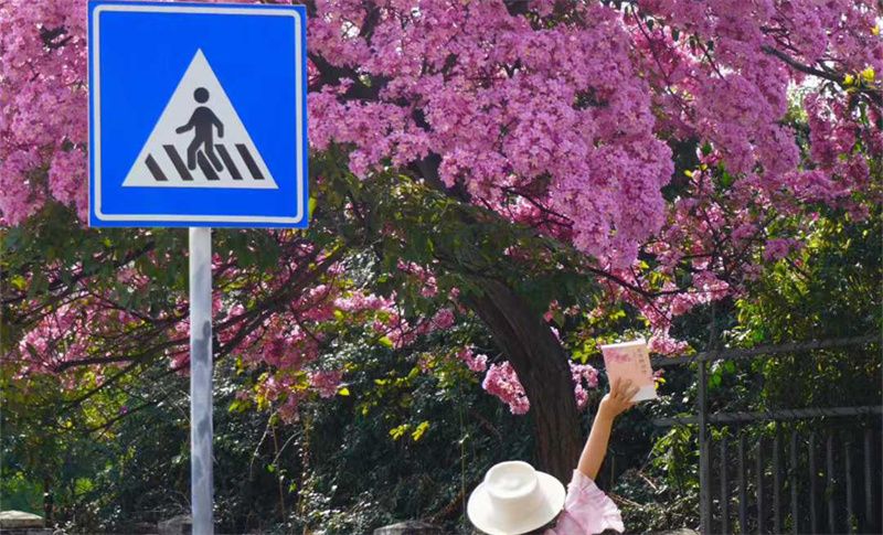 除了漫山遍野的花海,红河还有“一树花海”的特色景致。蒙自一中凤凰路与文汇路交叉口的那棵紫花风铃木,是冬日里的独特风景线。一棵树开出一片花海,紫色的花瓣,像一串串风铃挂在枝头,随风摇曳,惊艳无比。