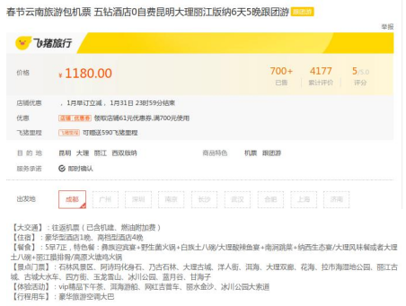该旅游产品广告链接:春节云南旅游包机票 五钻酒店0自费昆明大理丽江版纳6天5晚跟团游