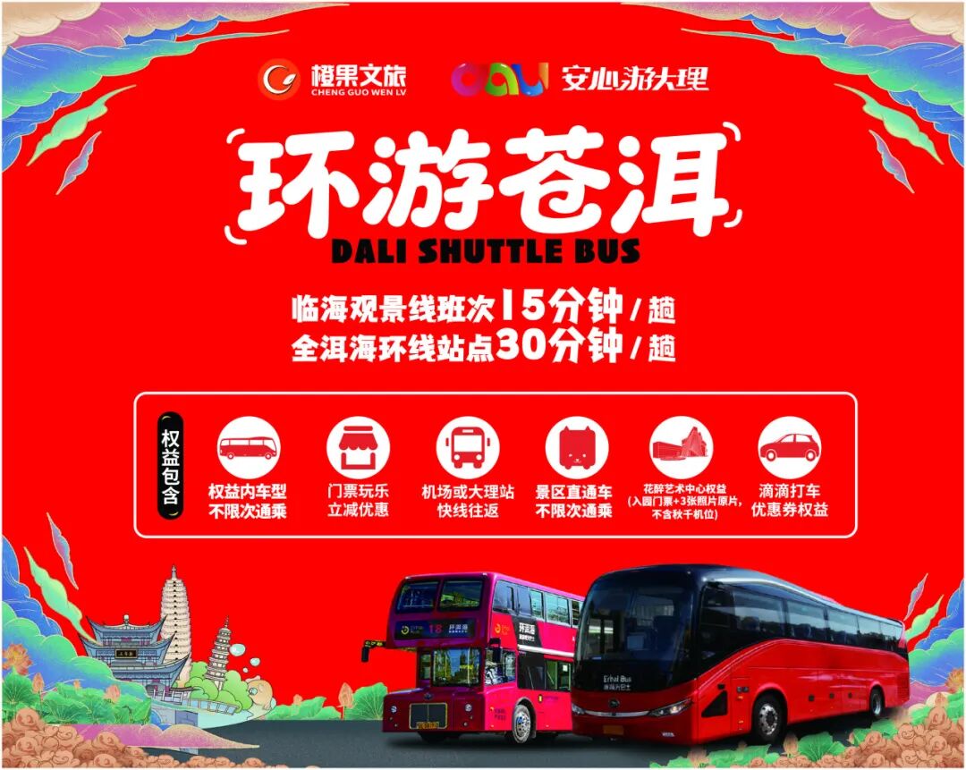 苍洱畅行:除双层巴士外,更可无限次乘坐「高端空调巴士」,拓展更广探索半径。