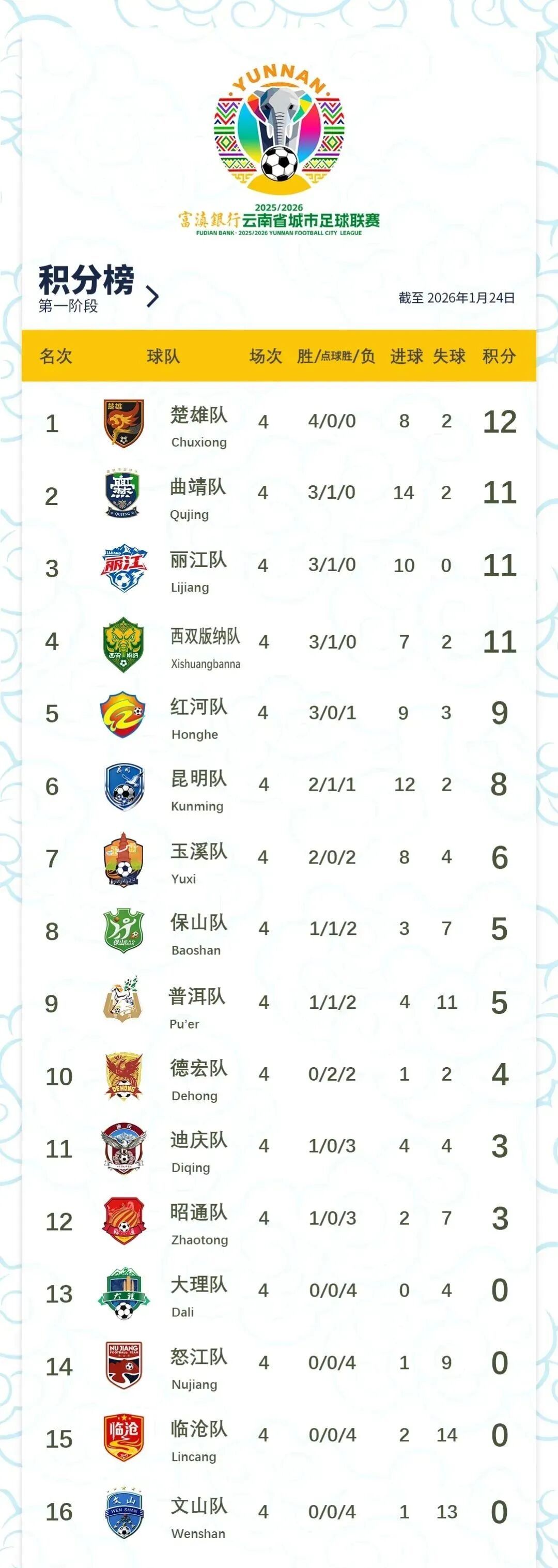 四轮战罢,“滇超联赛”最新积分榜出炉,文山队虽仅攻入一球,暂列积分榜第16位,却始终以坚韧姿态征战绿茵赛场。赛场上的哨声阵阵回响,这支球队的拼搏模样,恰如文山的文旅底蕴——不事张扬却内蕴深厚,于默默蓄力间绽放独特魅力。