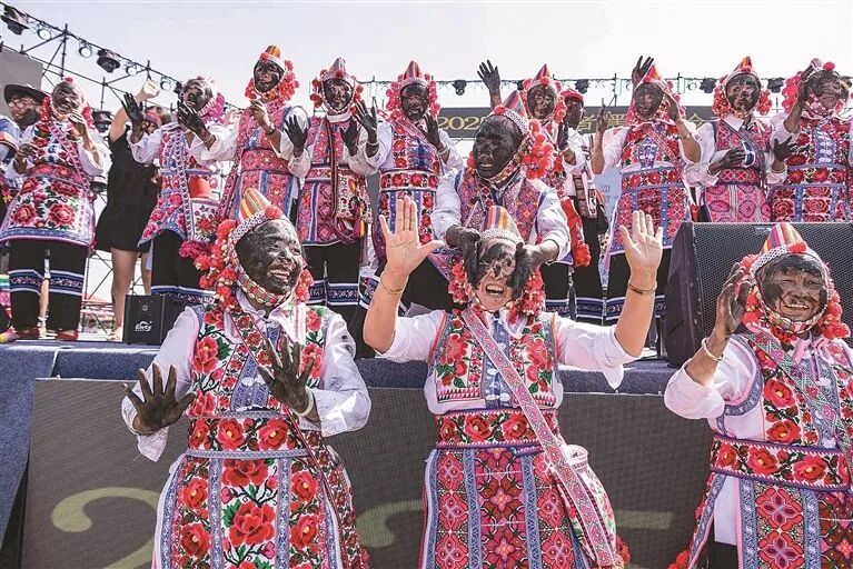 彝族“花脸节”,“越抹越黑越幸福”,“千人跳弦子·万人抹花脸”的盛景曾创下吉尼斯世界纪录,篝火燃起时,弦子一响,文山成为欢乐的海洋。