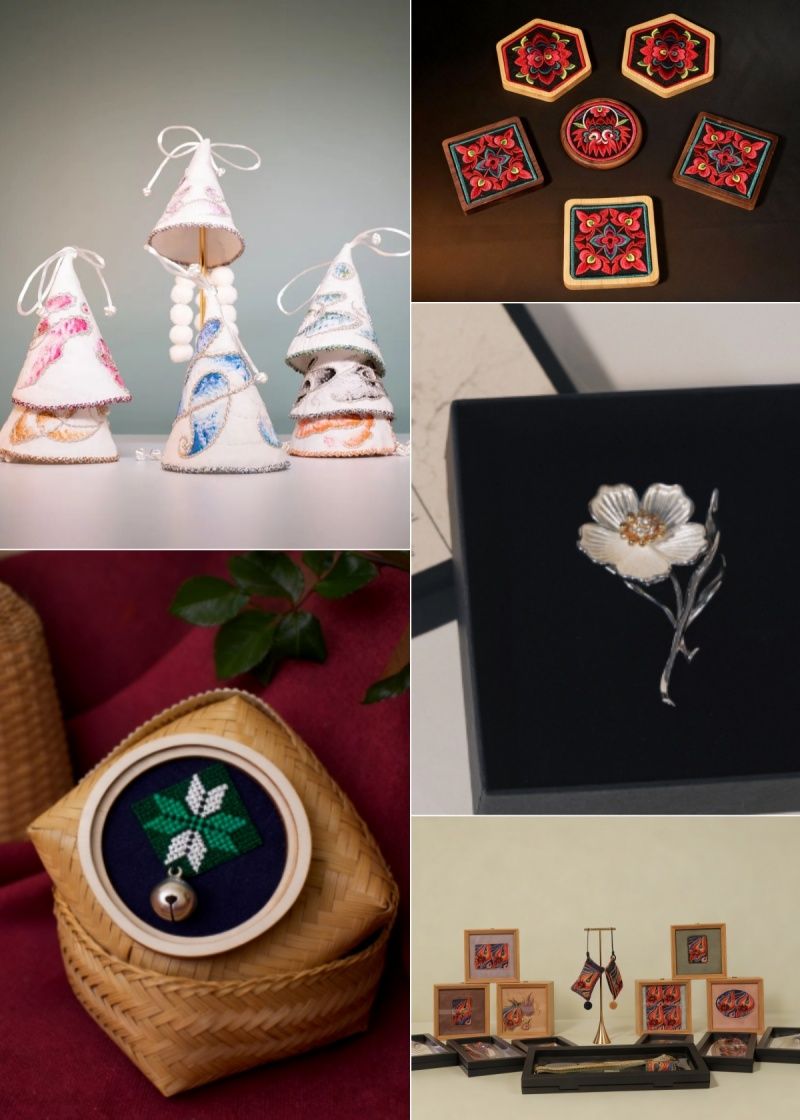 除了舌尖美味,更有非遗手作添新意。在红河州评选出的“最佳红河非遗伴手礼”和“红河非遗伴手礼”中,有手工器具:手握山河梯田纹紫陶包银杯、嵌锡“心经”茶具套装、紫陶祥瑞壶套装;刺绣文创:阿细弦焰小夜灯/手机腕链/挂饰、一枝晴雪梨花胸针、哈尼族刺绣冰箱贴、花腰彝族纹样杯垫、奕绣铃踪钥匙包;还有特色挂饰:梯浪辉影汽车双面日月盘挂饰、绿美喵喵手玩挂饰,每一件都充满着文化底蕴。
