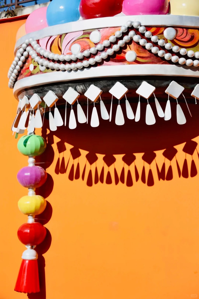 • 民族帽墙:亮黄色墙面挂满立体民族彩帽,造型别致,拍出来很有彝族风情。