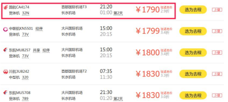 从行程看,北京至昆明出发时查询的往返机票价格最低为1790元。