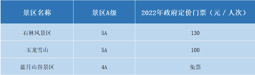 根据云南省《2025年云南团队旅游产品消费提示》,结合2022年政府指导价及市场调节价A级景区名单计算得出: