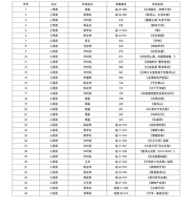 秉承公平、公正、专业的赛事精神,此次大赛组成专业评审团,经过严谨的评审环节,最终评选出12位作者的36件(组)获奖作品,并将获奖名单与获奖作品于2026年1月12日进行公示。这些作品不仅是一幅幅精美的摄影画面,更是宁洱40年奋斗历程的视觉呈现。
