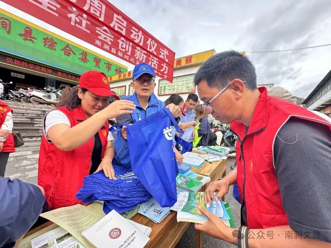 活动内容:开展《公共文化保障法》《文物保护法》《非遗保护法》《未成年人保护法》《旅游法》《大理州非遗保护条例》《南涧跳菜传承保护条例》等文旅政策法规、惠民政策、旅游景区景点等宣传,推介当地文化旅游。
