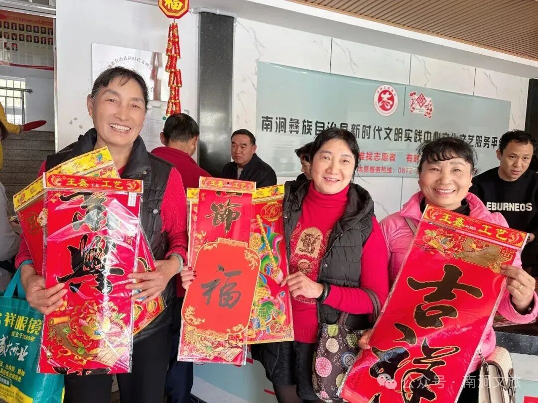 活动内容:新春到,挂春牌,自家门户自家描。邀请南涧县书法家与群众共同题写“春”牌,传承中华文化,寄托新年祝福。同时开展“新春猜谜语”有奖活动。组织小朋友参与“猜谜语”活动,送出各类少儿图书,满足人民群众对文化生活的新期待。