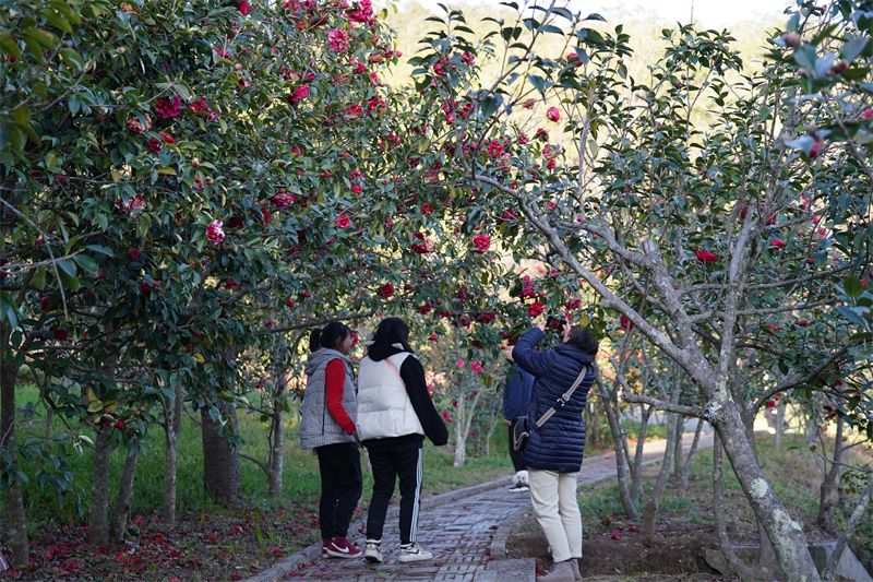 时下,楚雄紫溪山茶花园的山茶花悄然绽放,一朵朵花儿在枝头肆意舒展,在暖阳下显得热烈而明媚。