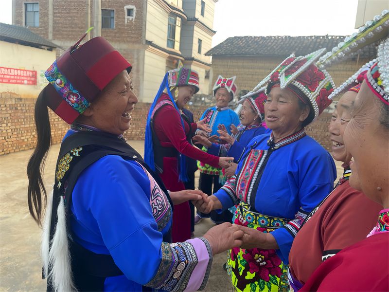 此次重返之旅,老队员们重踏曾经挥洒青春的土地,循着当年的演出足迹缓缓前行,在普者黑喀斯特湿地的清芬气息中,重拾那段尘封已久的青春记忆。交流现场,两地撒尼同胞围绕传统歌舞、民俗礼仪展开深度互动,老队员们精神矍铄,即兴载歌载舞,演绎起1975年访亲时传授给当地同胞的经典歌舞。那些熟悉的旋律与真挚的演绎,瞬间唤醒全场共同的时代记忆,掌声与热泪交织,定格成最动人的画面。
