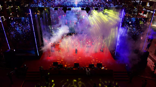 当夜色渐浓,“遇见云南·夜间广场舞”——云南传统歌舞乐专场演出将南屏街中心广场变为欢乐的海洋。傣族白象马鹿舞以创新传递美好祝愿,一舞《群鹿呈祥》尽显国家级非遗的风采;时尚动感的《耿马泼水舞曲串烧》将古老民族韵律注入现代潮流节拍;粗犷豪迈的傈僳族舞蹈《嘎尺那洒》收获无数叫好……民族歌舞轮番上演,精彩迭出。随后的广场舞更是将活动推向高潮——这并非单纯的表演,而是一场全民参与的“非遗歌舞课堂”。身着民族盛装的舞蹈演员与市民、游客手拉手,共同跳起欢快的舞蹈,踏步声与欢笑声汇成最动人的城市节拍。