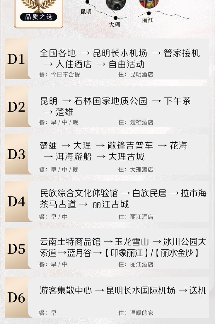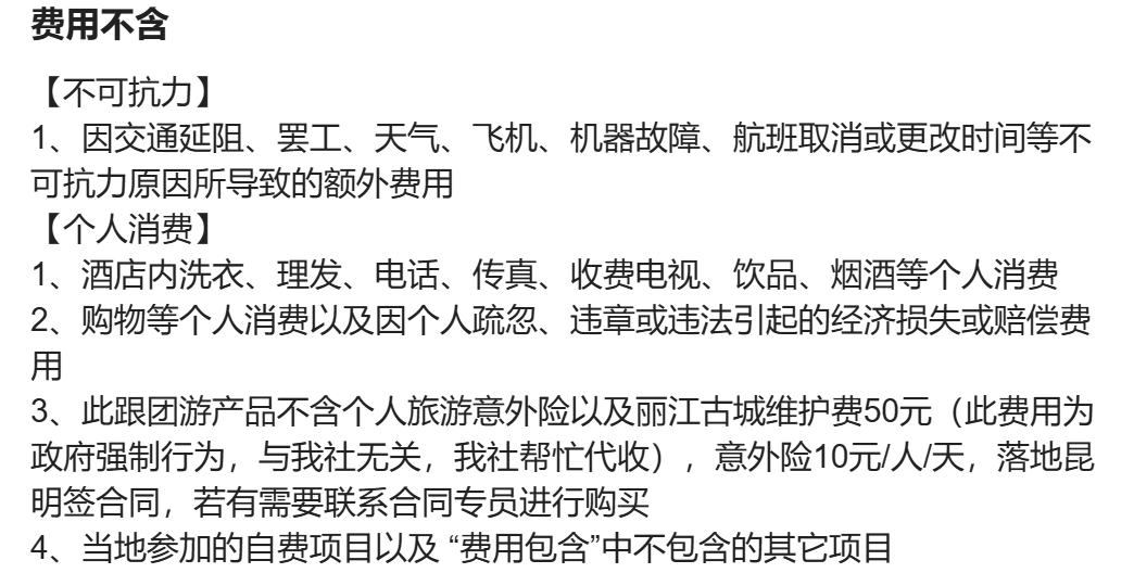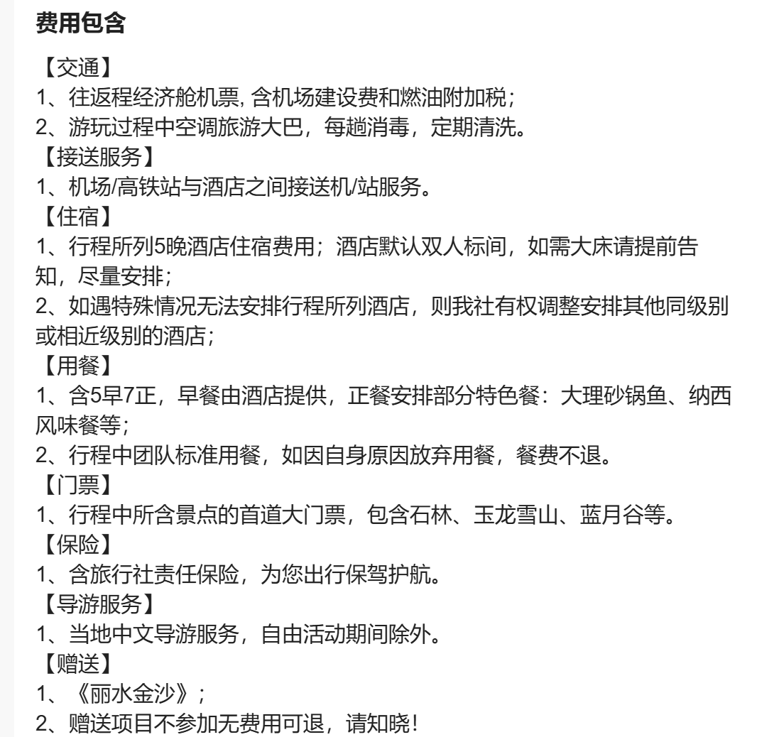 此行程包含大交通、住宿、餐饮、景区门票、云南省内交通等费用