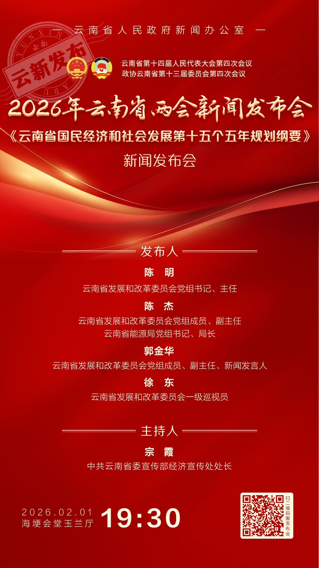 2月1日,云南省人民政府新闻办公室在海埂会堂举行《云南省国民经济和社会发展第十五个五年规划纲要》(以下简称《纲要》)新闻发布会,介绍相关工作情况并回答记者提问。