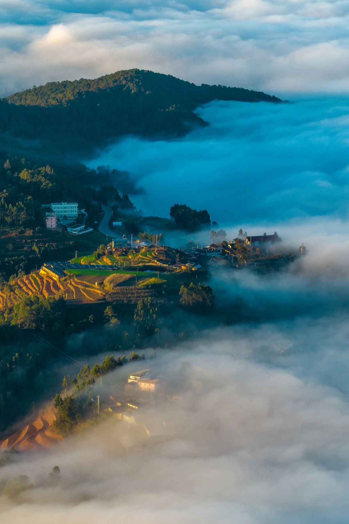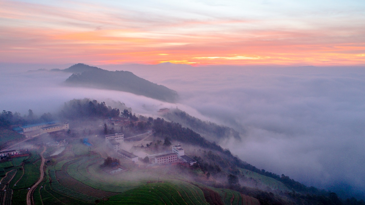 清晨的爱尼山乡旧哨村,云海如期而至。