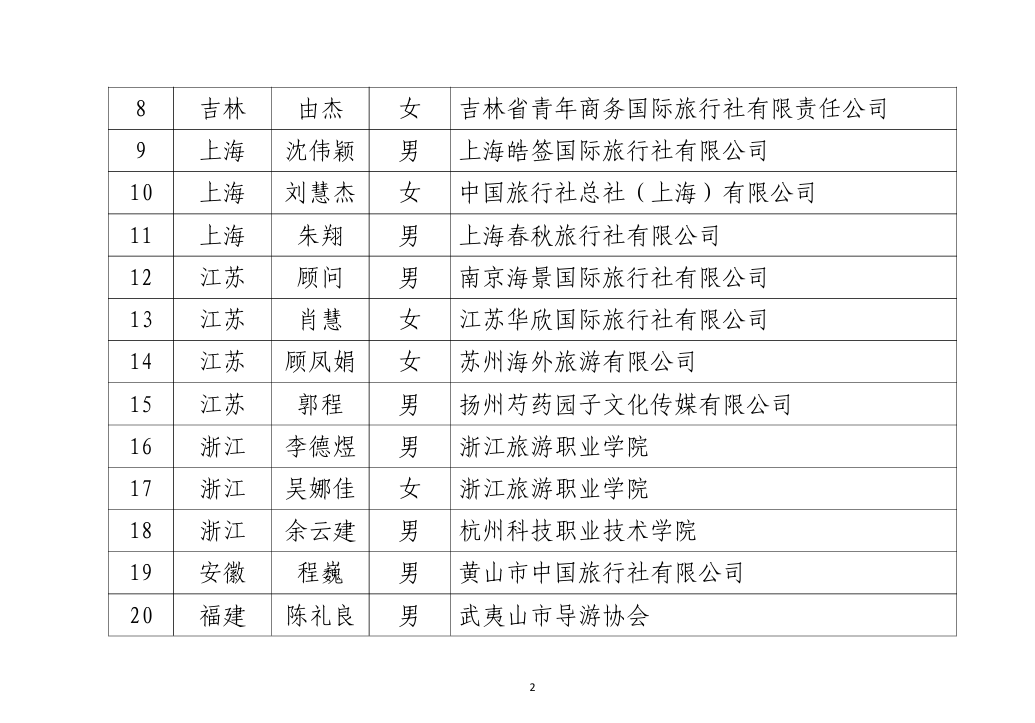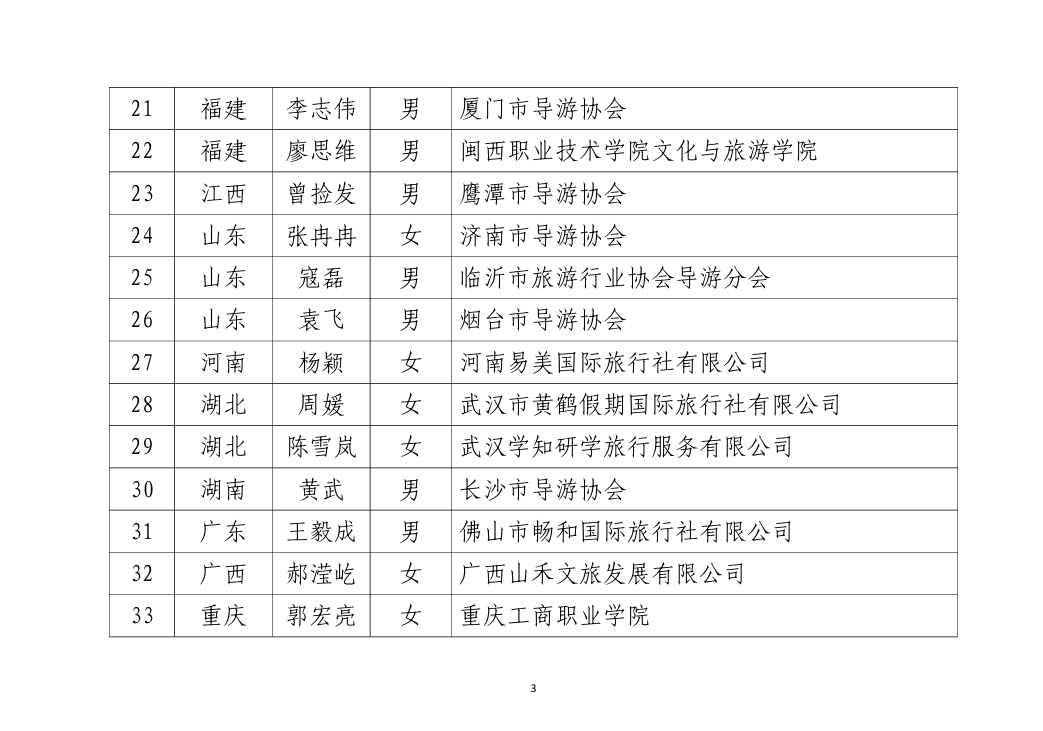 全国特级导游等级考核拟获评名单的公示