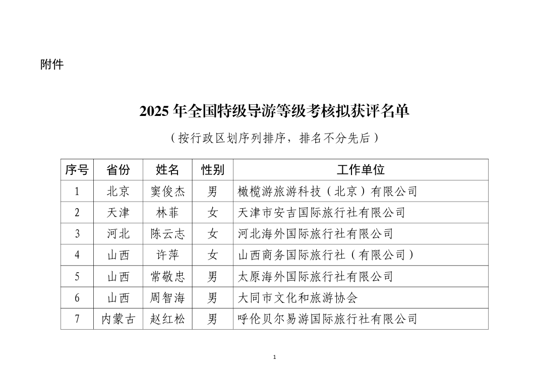 附件:2025年全国特级导游等级考核拟获评名单