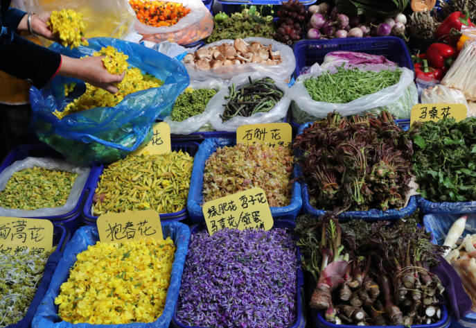 云南的春天,不仅能赏在眼里,更能尝在舌尖。普洱思茅的香椿抢“鲜”上市,焯水凉拌或炒蛋,满是山野鲜味;昆明篆新农贸市场里,蕨菜、石斛花、棠梨花等春菜陆续登场,咬一口齿颊留香;玉溪元江的“花果宴”更是惊艳,金雀花鸡蛋饼、攀枝花芯炒肉、菠萝蜜炖蛋等,将春味发挥到极致。