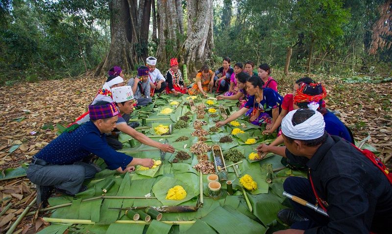 景颇族绿叶宴制作技艺已被入选云南省第五批省级非物质文化遗产代表性项目名录,传承人以口传心授的方式,将采叶、控火等古法精髓代代相传。元、明史籍中,对景颇族的饮食分别有“食无器皿,以芭蕉叶籍之”和“食不用筷,捻成团而食”的记载。这种古老的饮食遗风,一直流传到现在。