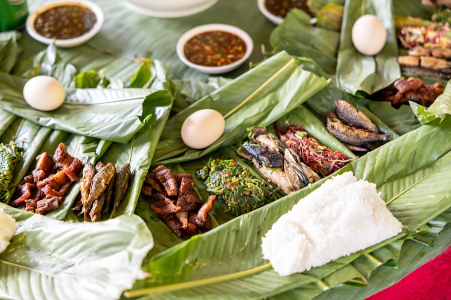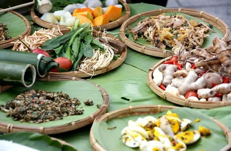 景颇烤鸡的诞生需耗费近一天时光,更是绿叶宴精髓的生动缩影。宴席上,鱼腥草的清爽、蜂蛹荷包蛋的鲜香错落交织,搭配醇厚回甘的景颇水酒,每一口都是景颇族人的热情与豪爽。2024年国庆节期间,德宏州陇川县更是举办了300人的限定体验活动,让这份藏在山林里的非遗美味,走出深巷、被更多人看见与喜爱,让千年饮食智慧焕发新生。