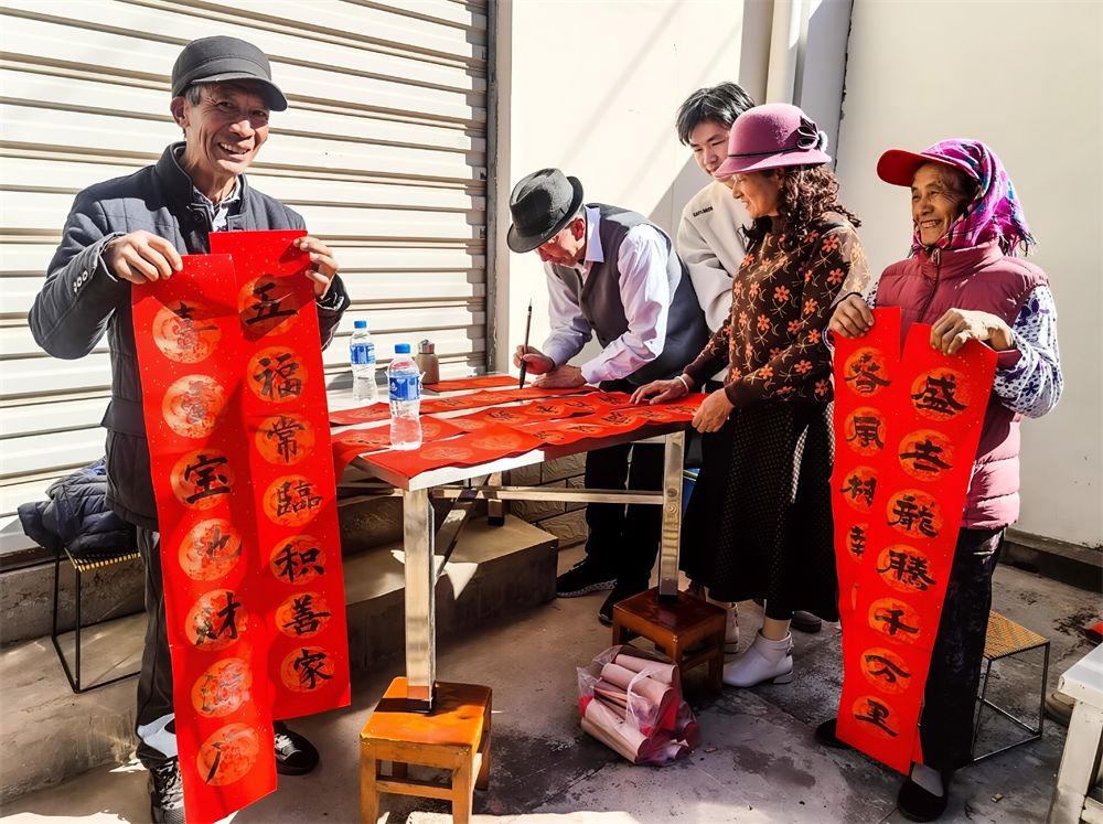 州、县书法家现场挥毫,免费为群众书写春联、福字,把“年”的祝福送进千家万户。