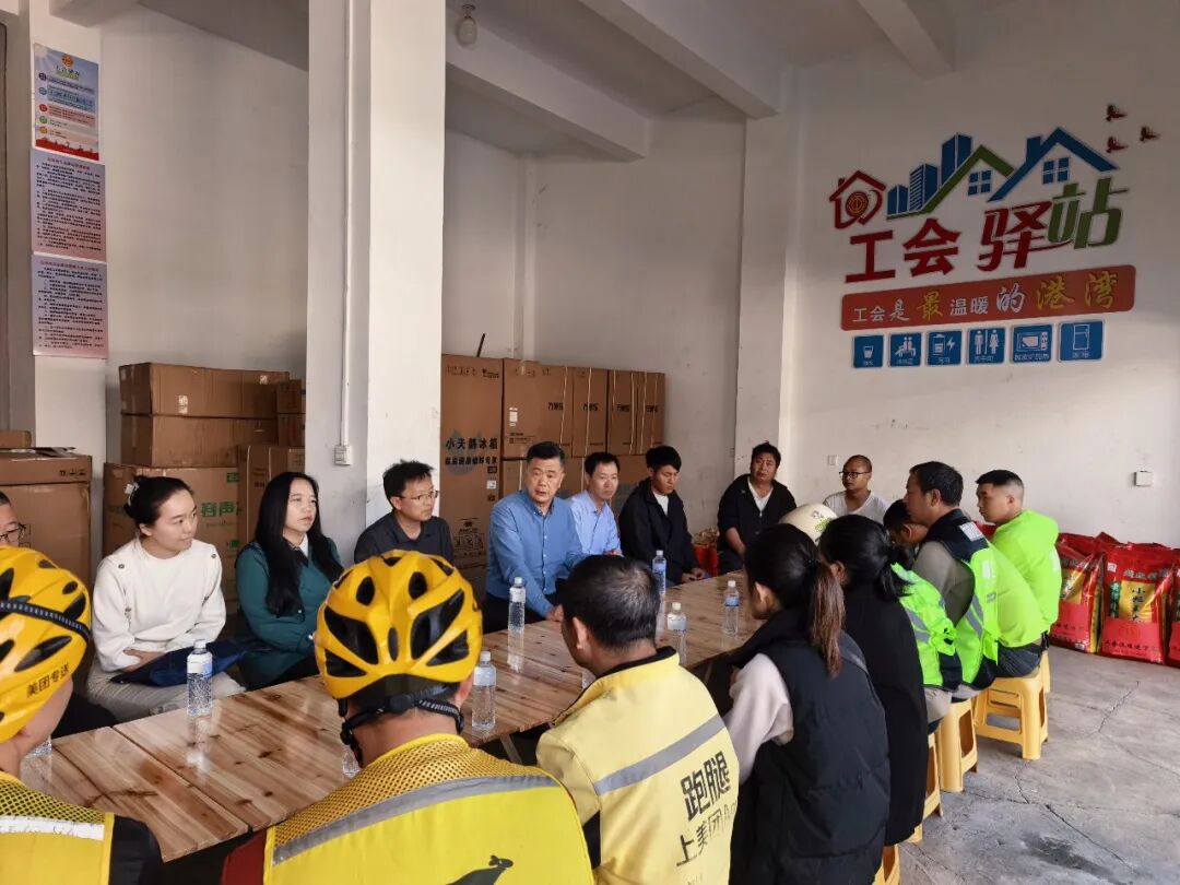 金平通安物流公司的工会驿站自投入运营以来,持续为过往货车司机、快递员等户外劳动者提供饮水、充电、临时休息等便捷服务,深受大家好评。慰问组在这里仔细察看驿站管理使用情况,与正在歇脚的司机、快递员亲切交谈,并向现场20名新就业形态劳动者发放了慰问物资。