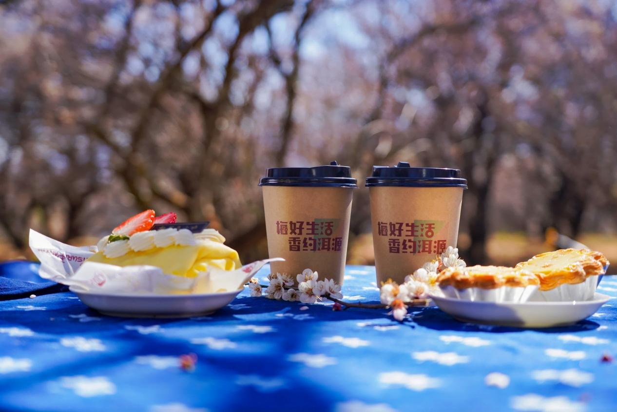 梅林深处,一盏咖啡・半日梅香体验区氛围感拉满,万亩梅花为背景,手捧一杯香醇咖啡,鼻尖是淡淡的梅香,口中是浓郁的咖味,游客们或静坐赏梅,或拍照打卡,在自然美景中享受“梅好生活 啡你不可”的惬意,沉浸式感受慢生活的美好。