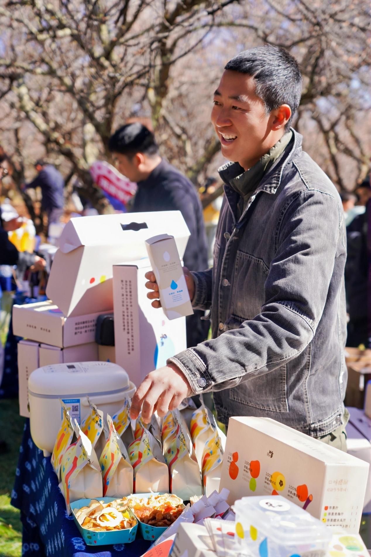 走进嘉年华现场,梅好喜市无疑是最具烟火气的打卡地。作为融合洱源文化特色与生态优势的沉浸式市集,这里汇聚了非遗传承人与本土企业,各类梅制品,甲马、雕梅等手作、新春好物琳琅满目,摊主的吆喝声、游客的欢笑声交织,大家一边挑选特色商品,一边感受着洱源本土文化与新春氛围的巧妙融合,沉浸式体验“梅”主题的别样年味。