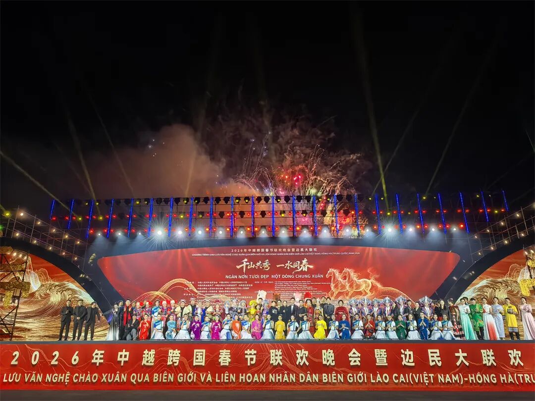 2月2日至3日,2026年中越跨国春节联欢晚会暨边民大联欢活动分别在越南老街省老街坊和甘塘坊、中国云南省红河州河口县举办,中越双方欢聚一堂,载歌载舞,共同迎接2026年春节的到来。