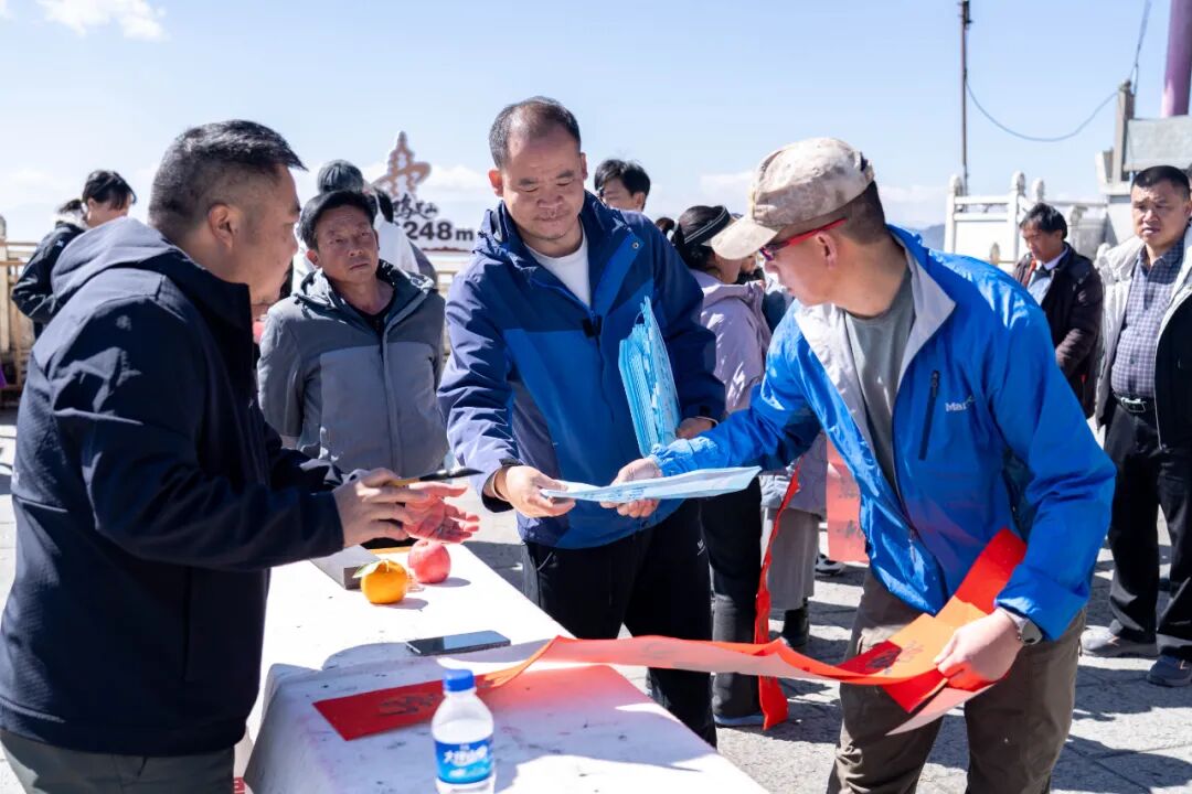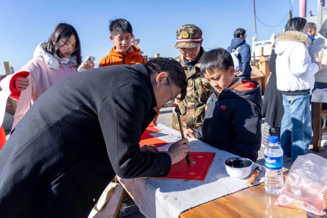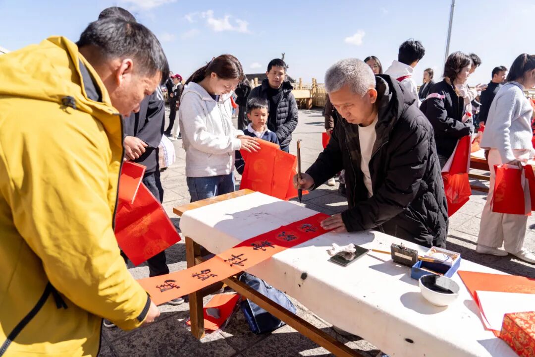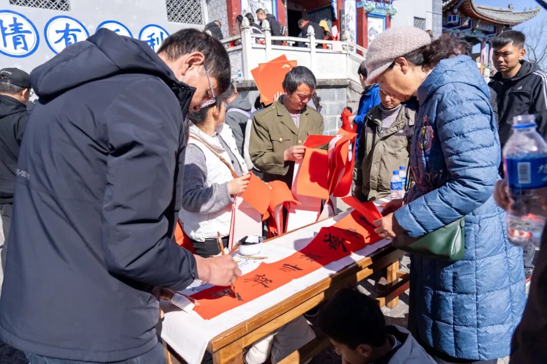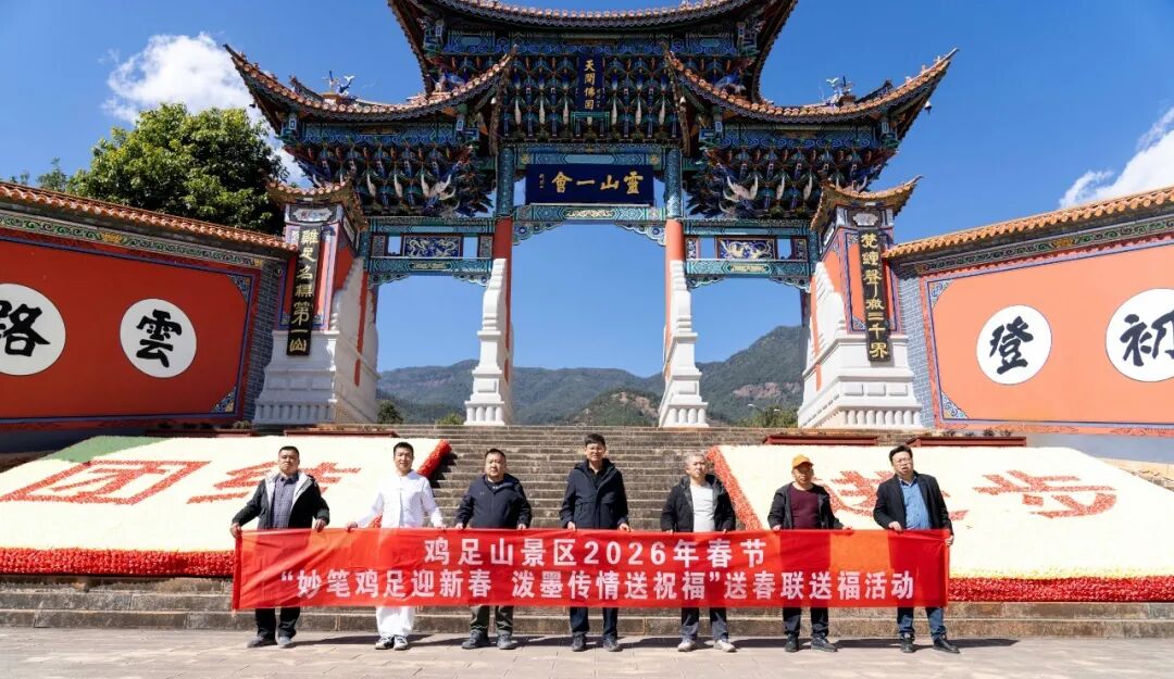 为传承弘扬中华优秀传统文化,营造喜庆祥和的新春氛围,丰富游客春节文旅体验,2 月 8 日,由宾川鸡足山旅游投资开发有限公司联合宾川县文学艺术界联合会、大理来订嘛网络有限公司主办,宾川县书法家协会协办的鸡足山景区2026年春节“妙笔鸡足迎新春 泼墨传情送祝福” 春节送春联送福活动,在鸡足山景区金顶睹光台举办 。