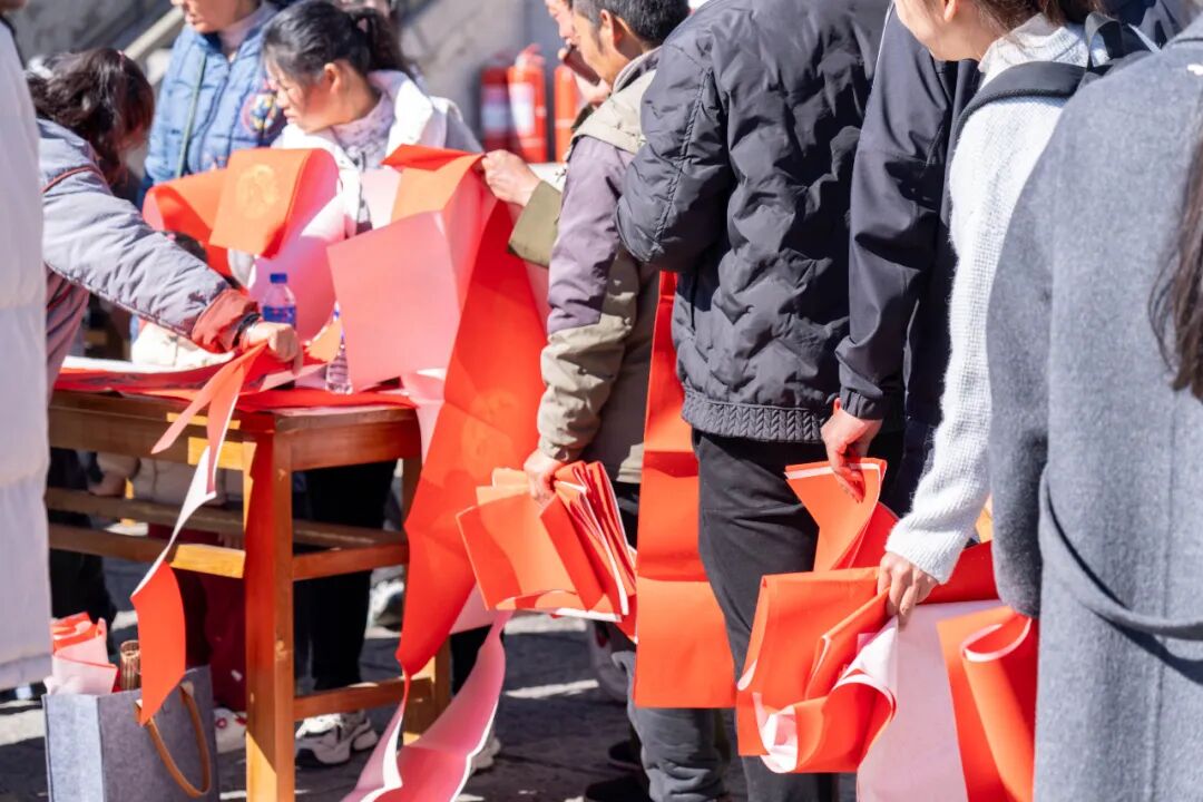 活动当天共赠送春联及软福卡900张、硬福卡500张,小福扇200把,宣传折页1000份,文创手提袋500个。