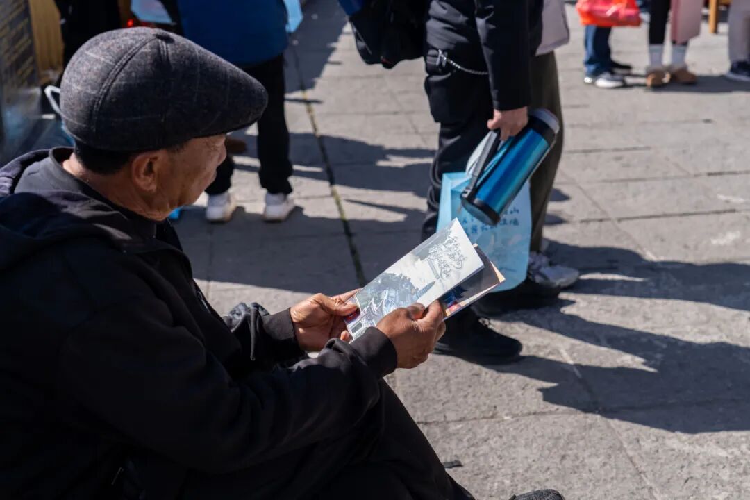 书写赠送环节人气爆棚,游客们纷纷驻足观赏、有序等候,精心挑选心仪的春联与福字,与书法爱好者交流互动、合影留念,现场暖意融融、年味浓郁,欢声笑语不绝于耳。