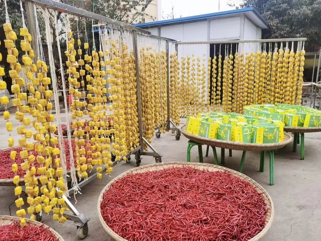它的制作,同样秉持古法。以本地优质黄豆为材,用传统的“酸浆”点制,使豆腐质地绵韧,豆香醇厚。随后,在姜黄水中耐心浸煮,让颜色与风味深深渗透。最终,用山茅草或麻绳串起晾挂,成为一道独特的风景。对旅居者而言,拾起一串黄豆腐,在炭火上耐心烘烤,看着它表皮渐渐鼓起、变得焦脆,内里却化作柔软的云朵,再蘸上本地特色的煳辣椒蘸水,姜黄的馥郁、豆香的醇厚与辣椒的猛烈在口腔中碰撞,是一场极具仪式感的风味体验。