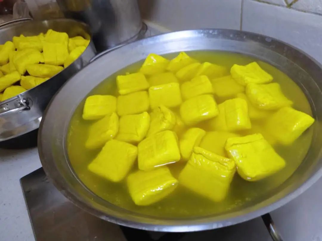 它的黄,绝非工业的渲染。用姜黄染制豆腐,是宣威先民智慧的结晶,让豆腐在视觉与味觉上都镀上了一层阳光的暖意和独特的草本香气。这项融合了色彩美学与食养智慧的传统技艺,已成为市级非物质文化遗产。