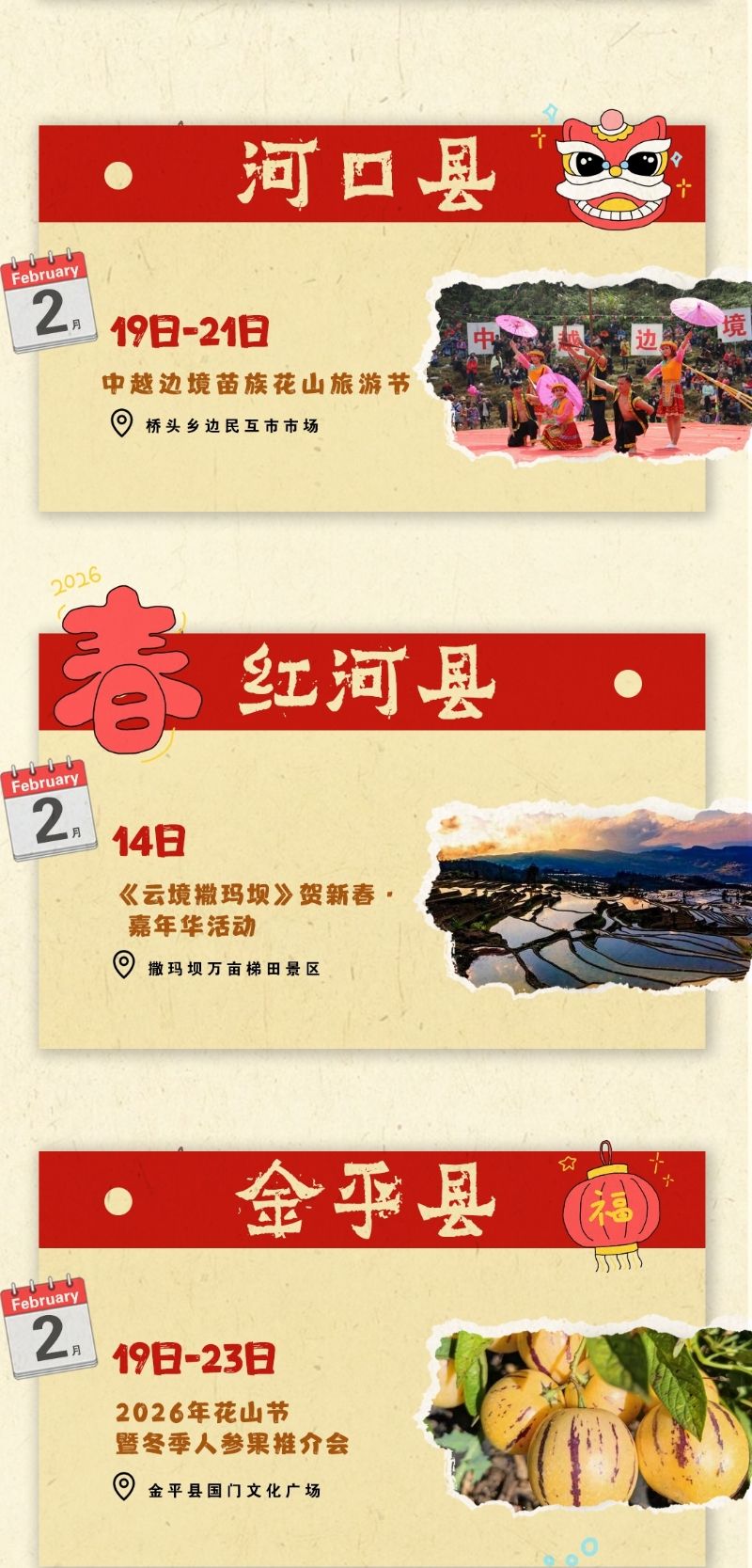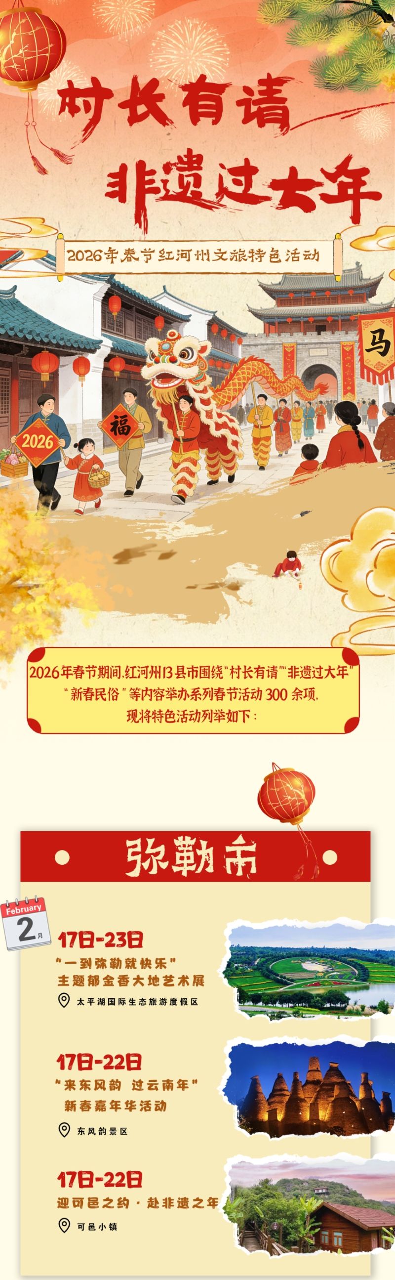 来红河,红红火火过大年 | 花山节、长街宴、跨境嘉年华 2026新春活动第三弹来啦!