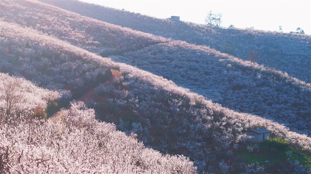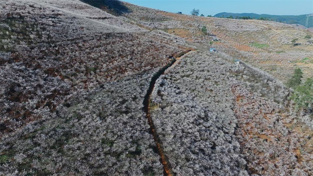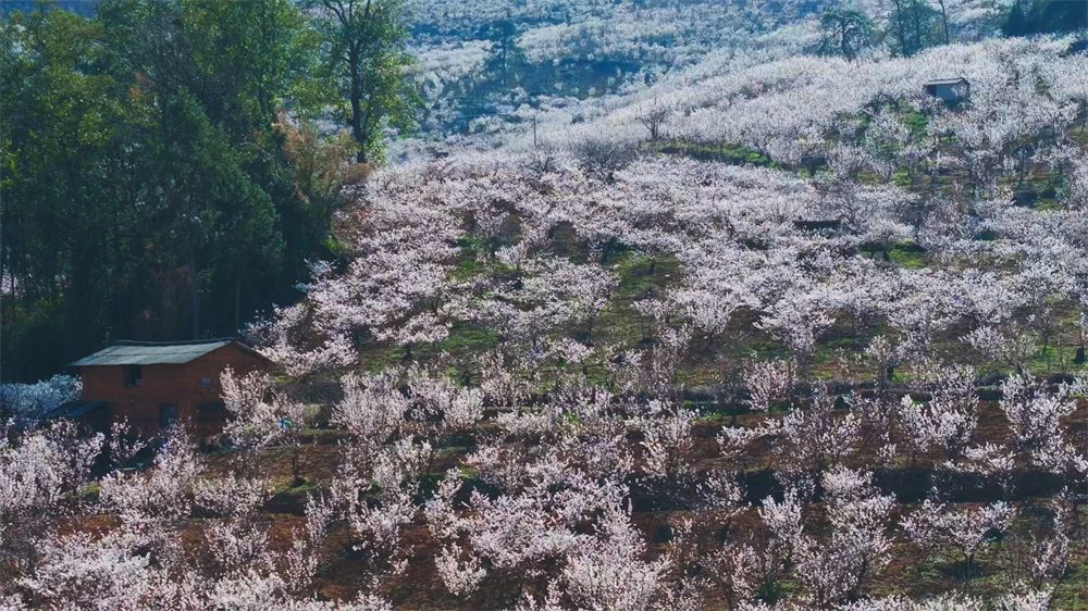 春风如约而至,武定县狮山镇吆鹰村委会大石房村的万亩樱桃花,正以一场盛大的花事迎接这个美好的季节。