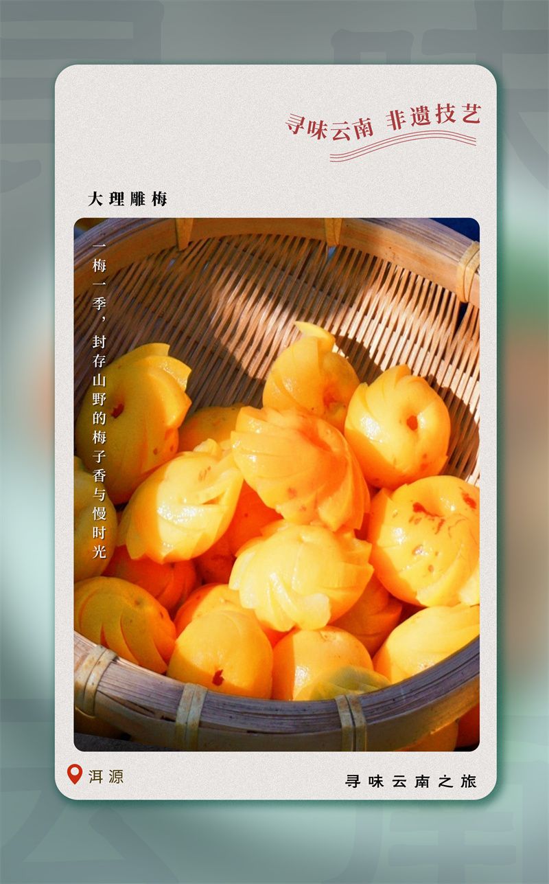 在“梅子之乡”洱源,雕梅不仅是食物,更是代代相传的技艺与情感纽带。大理的白族、彝族姑娘自幼学习这门手艺,指尖的灵巧程度,曾是衡量慧心的重要标志。这项始于唐代南诏时期的古老风俗,历经千年流转,于2022年正式列入云南省非物质文化遗产名录。