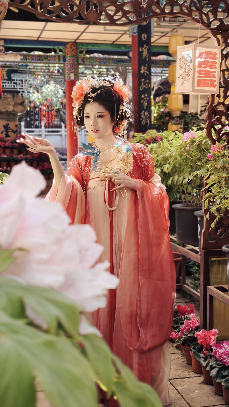据介绍,与往年相比,本届花展更加强调游客的互动性与沉浸式体验。园区内不仅制作了壮观的牡丹主题主景观,还精心布置了11组氛围花墙、垂吊彩纱以及大量灯笼、彩带等传统艺术装置,形成了一条“可拍、可玩、可停留”的游园动线。特别设置了“凤穿牡丹”“花香祈福”“全家福拍照”等多个高辨识度打卡分区。游客可参与游园集章打卡、非遗漆扇制作、花艺手作等活动,并与“财神送福”“牡丹仙子”等文化展示人物互动,在“马踏春芳门”“福禄寿禧财”等吉祥装置前留影,分享社交平台还有机会获得限量礼品。