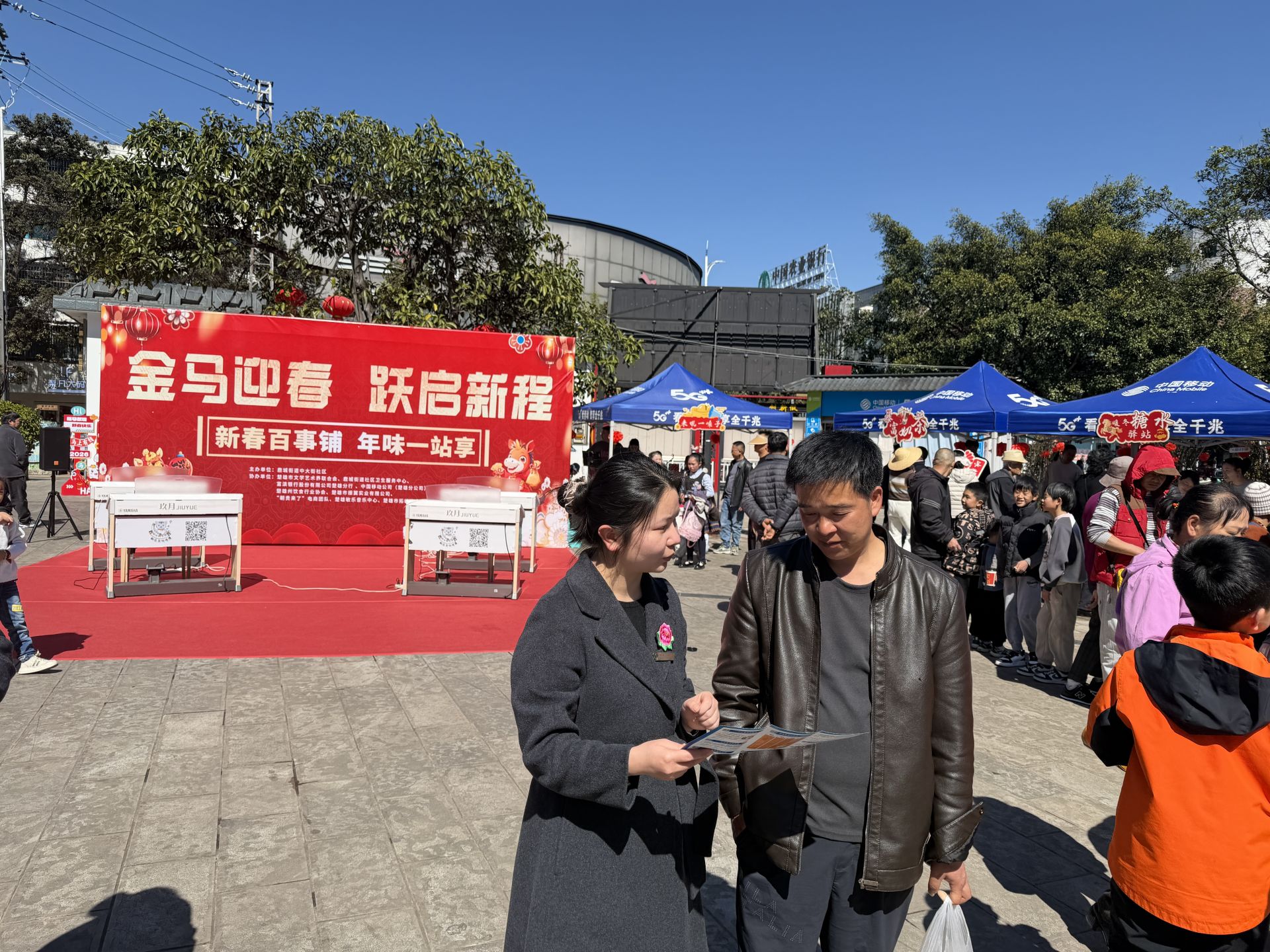 为深入贯彻落实反洗钱法律法规要求,切实履行金融机构社会责任,提升重点人群反洗钱风险防范能力,结合2026年新春返乡人员集中、资金流动频繁的实际情况,2月7日,富滇银行楚雄分行联合楚雄市鹿城街道中大街社区及相关协办单位,在中大街社区百信广场开展“防范洗钱风险,共筑金融安全”专项宣传活动,着力为群众送上“看得懂、记得住、用得上”的金融安全知识。
