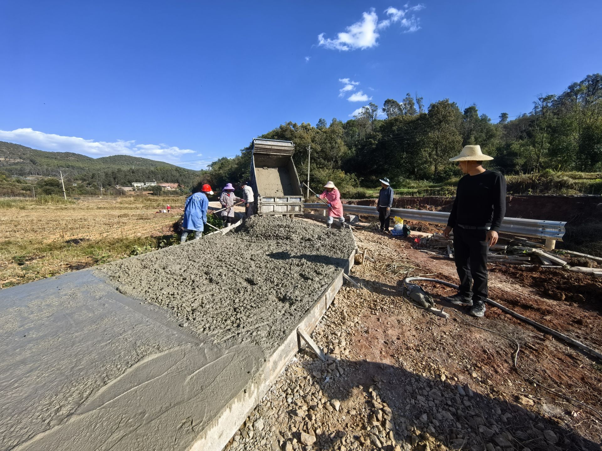 近日,楚雄州南华县龙川镇柿子树社区下周钱家小组通户道路硬化工程顺利完工。曾经“雨天泥泞难行、晴天扬尘扑面”的村道,如今变得平整通畅。“路修好了,出门省心,运货也方便,还能在家门口务工挣钱。”看着崭新的水泥路直通家门口,柿子树社区居民钱大姐脸上洋溢着笑容。这条新修道路不仅改善了群众出行条件,更成为龙川镇以工代赈推动民生改善、赋能群众增收的生动缩影。