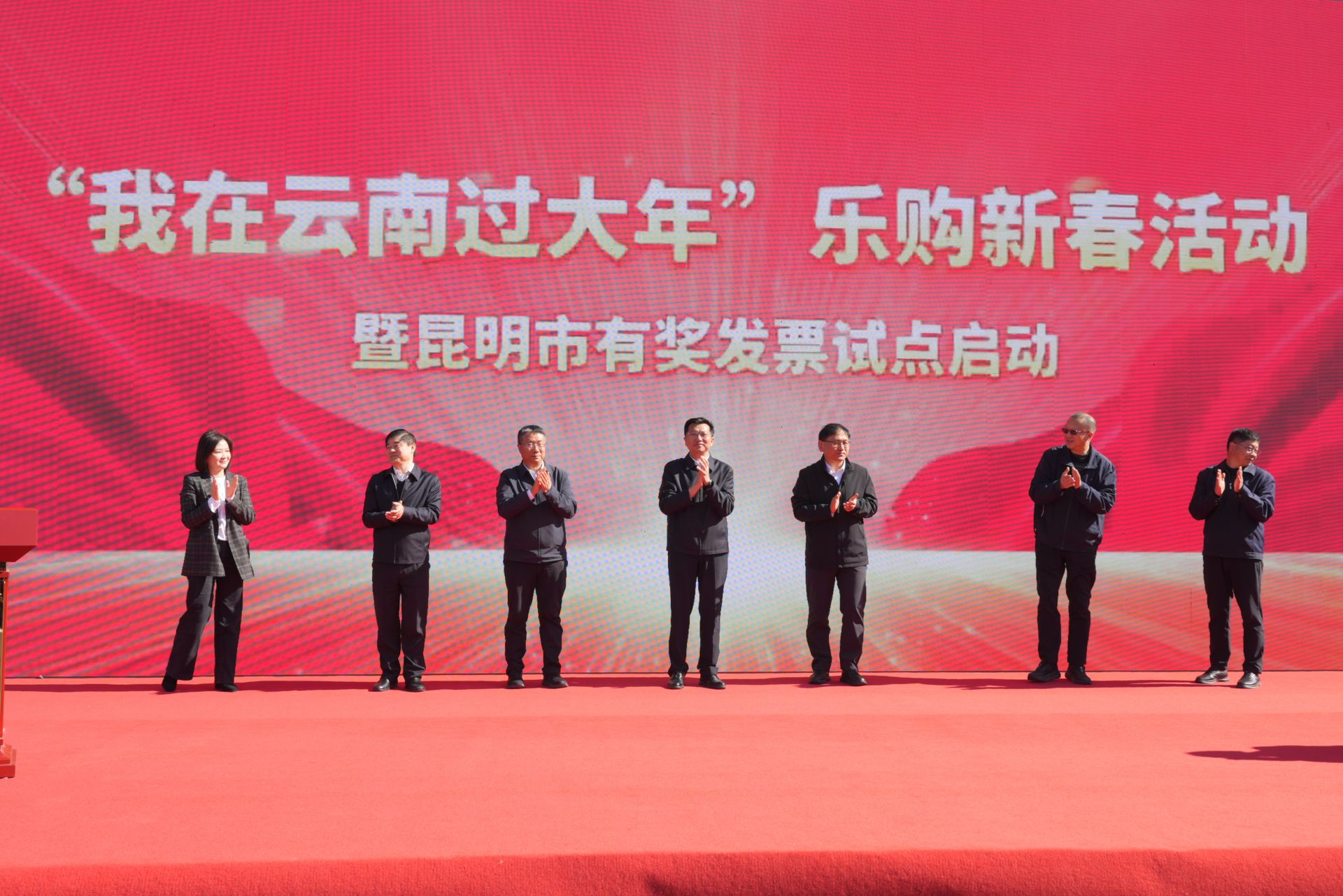新春将至,年味正浓。2月11日,“我在云南过大年”乐购新春活动暨昆明市有奖发票试点启动仪式在昆明滇池国家旅游度假区公园1903凯旋门广场举行。活动以“惠享云南·乐购新春”为主题,由省商务厅、昆明市人民政府主办,昆明市商务局、昆明滇池国家旅游度假区管委会承办。