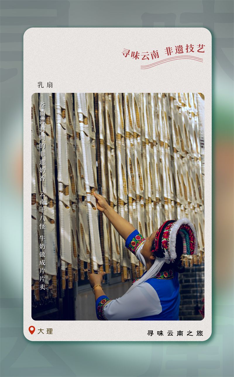 风掠过苍山,云漫过洱海,大理的滋味,藏在一口会呼吸的乳扇里。乳扇是白族人家世代相传的味觉密码,是刻在大理人骨子里的乡愁滋味,更是镌刻在烟火里的非遗匠心,“云南十八怪,牛奶做成片片卖”,这句俗语道尽乳扇的独特。