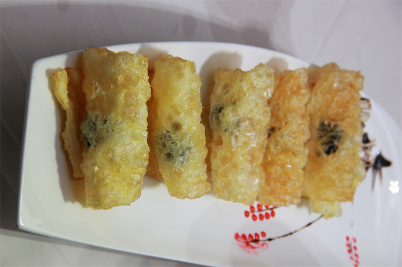 它是街头最动人的烟火,炭火轻烤,乳香四溢,卷上地道玫瑰酱,外微焦、内绵韧,酸甜交织,是古城巷陌里最治愈的滋味;油炸至金黄蓬松,酥香化渣,蘸上白糖或椒盐,是老少皆宜的解馋小食;入菜烹炒、凉拌佐酒,咸香适口,奶韵悠长;乳扇入茶,点缀白族三道茶,先苦后甜,藏着白族待客的温情与智慧。从街头小摊到节庆家宴,乳扇以千般风味,抚慰往来食客。