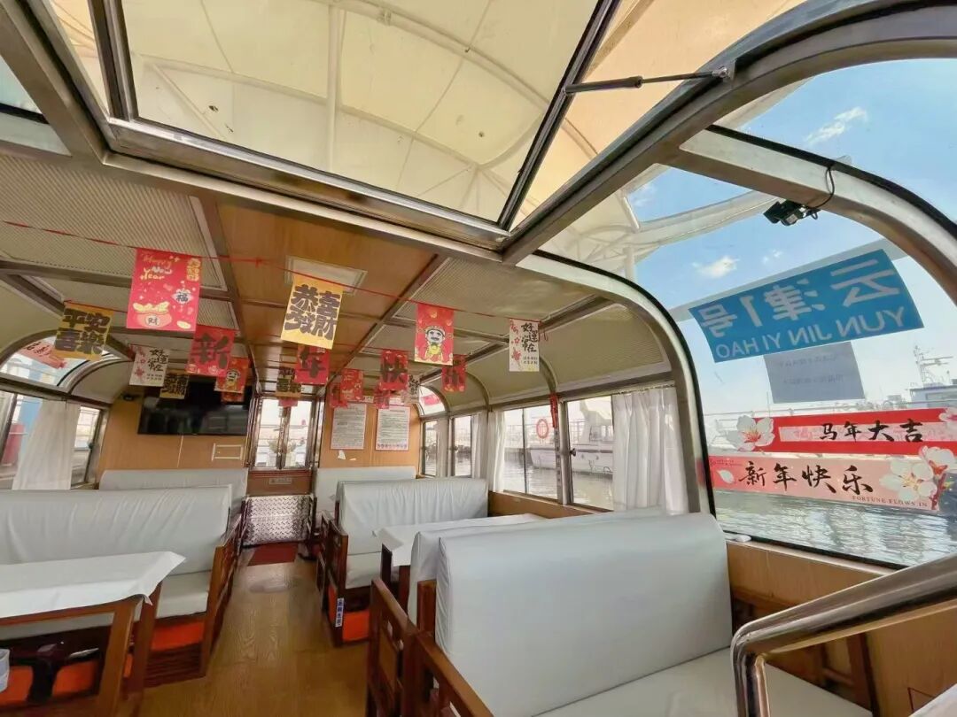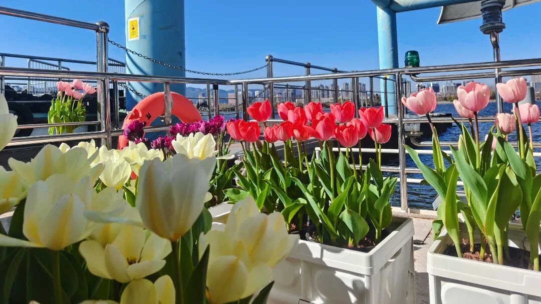 乘客乘郁金香装饰游船巡弋草海,投喂红嘴鸥;上岸后,凭购票凭证即可解锁“云津1号”专属接驳车草海绿道一日观光权益(招手即停·固定站点),自由抵达东风坝、大观公园、庾园(南门)、彰美村码头及网红开合浮桥等核心点位,真正实现“水上游有仪式感,岸上走有自由度”。